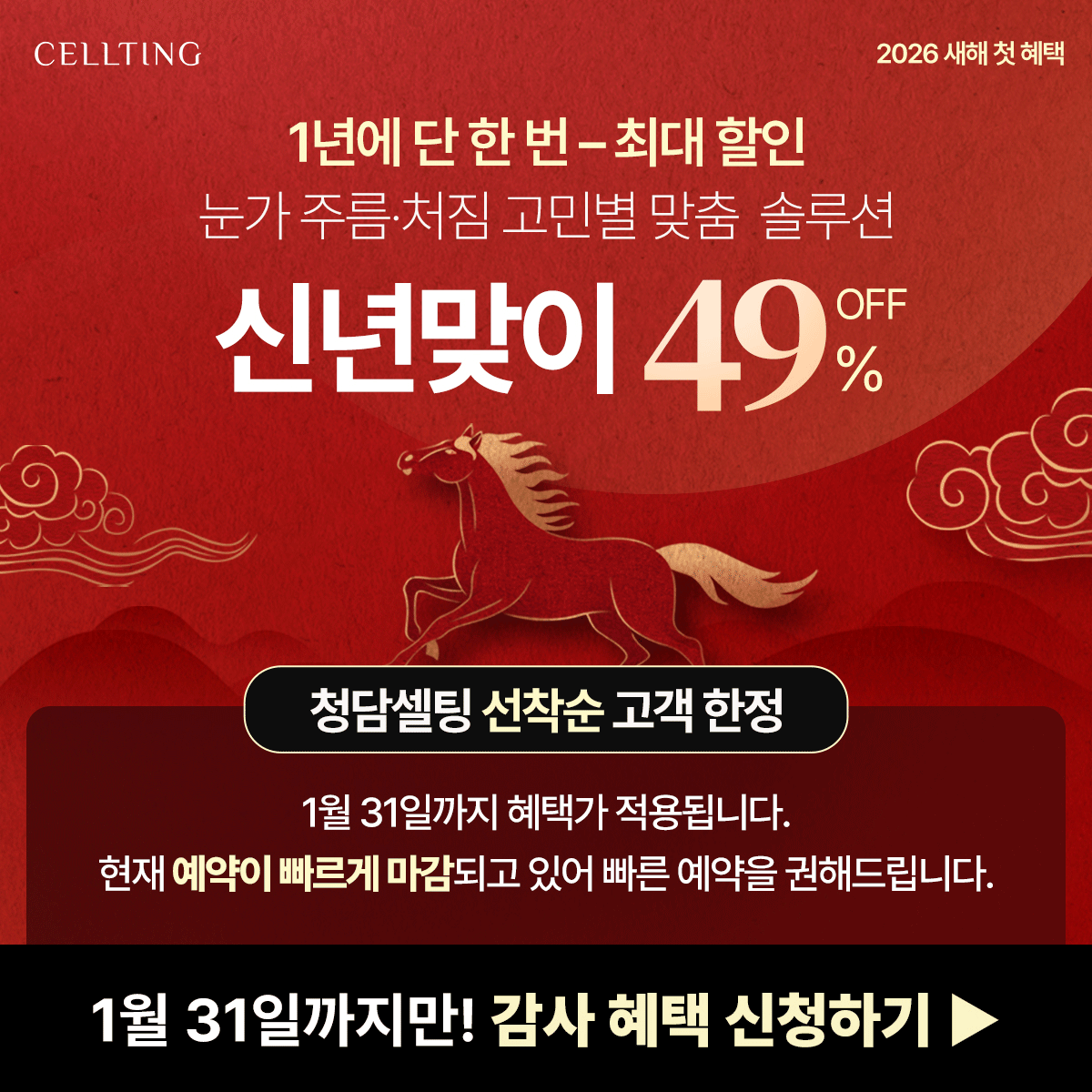 본문콘텐츠영역 Cellting’s Event 이벤트 전체 전체 비수술리프팅스킨부스터보톡스&필러 전체 비수술리프팅스킨부스터보톡스&필러 1년에 딱 한번★ 신년맞이 최대 49% 셀팅의원 청담 리즈셀리프팅